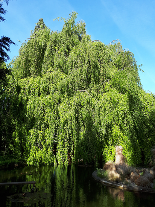 An diesen befinden sich Seitenäste die senkrecht bis zum Boden hängen.