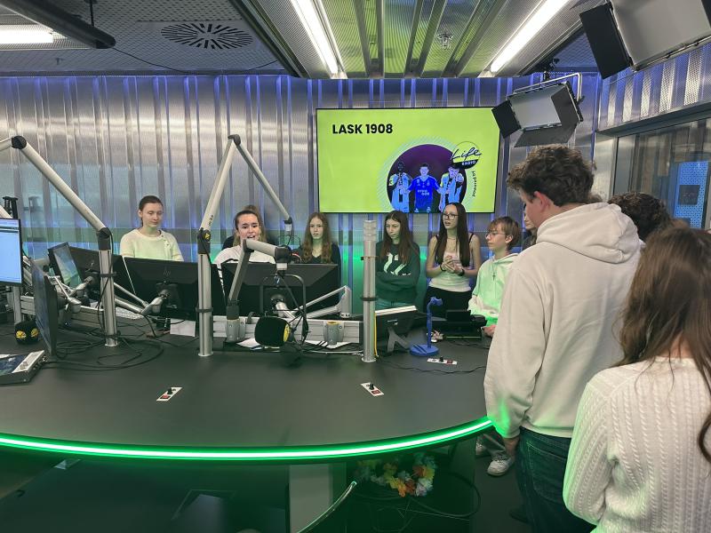 Am 4. Februar 2026 besuchte die 4A im Rahmen der Berufsorienierung die Life Radio Akademie. Bei einem spannenden Blick hinter die Kulissen erfuhren die Schülerinnen und Schüler, wie Radio und Podcasts entstehen. Im rund dreistündigen Workshop standen Medienproduktion, Rechte und Pflichten in der Medienwelt sowie wichtige Aspekte der Medienkompetenz im Mittelpunkt.