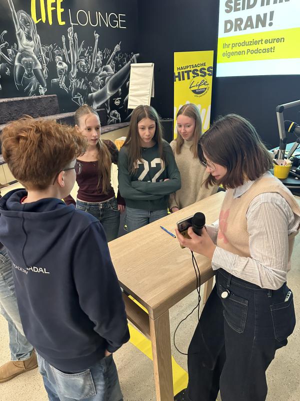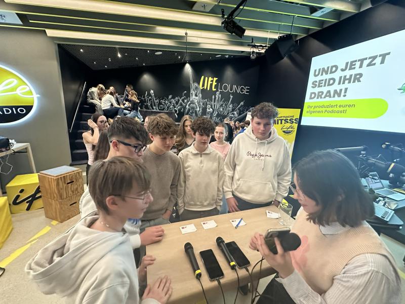 Das Highlight: Die Klasse durfte selbst aktiv werden, Beiträge planen, aufnehmen und einen eigenen Podcast produzieren. So erhielten die Schülerinnen und Schüler einen praxisnahen Einblick in die Welt des Radios und konnten ihre Kreativität und Teamarbeit unter Beweis stellen.