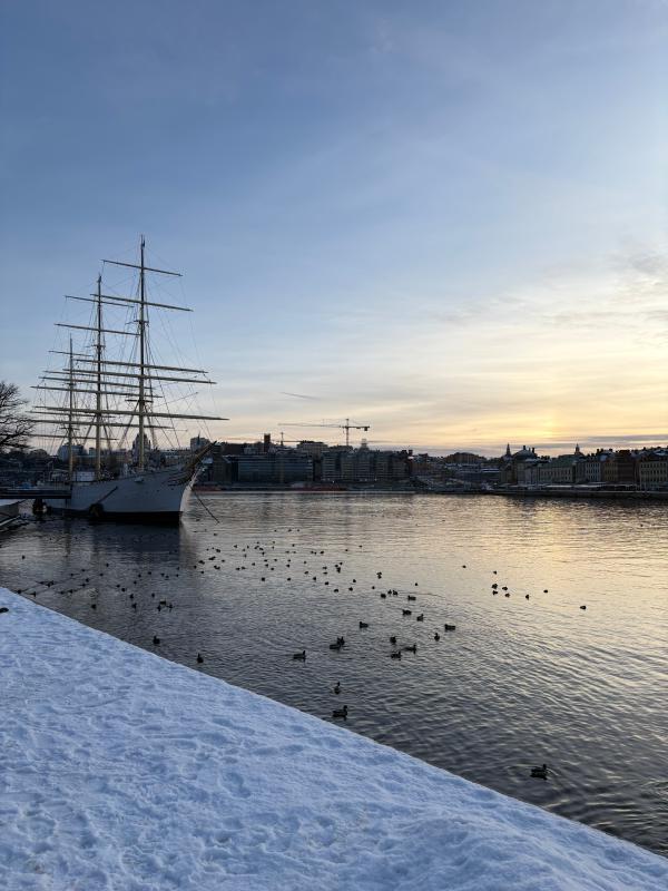 Meine Freizeit nutzte ich für Besichtigungen, beispielsweise besuchte ich an meinem ersten freien Tag das ABBA-Museum, anschließend schlenderte ich durch die wunderschöne Innenstadt Stockholm. So verschaffte ich mir einen ersten Überblick und Eindruck. Da es im Februar sehr kalt werden kann, an diesem Tag hatte es zum Beispiel -10 Grad, setzte ich mich nach einiger Zeit in ein Café um mich aufzuwärmen. Dort genoss ich die einzigartige Aussicht auf das zugefrorene Meer.