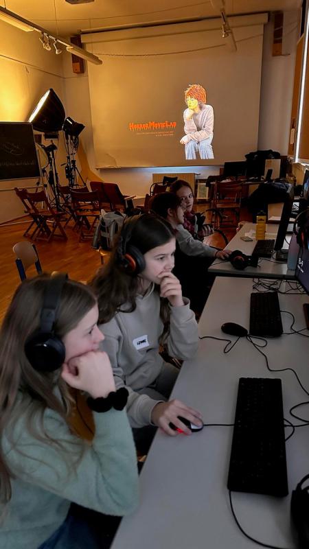 Am 9. und 23. Jänner tauchten elf  Schüler:innen (13–14 Jahre) im Rahmen eines Talentförderkurses  in die Welt des Filmemachens ein. In der Videowerkstätte der HBLA für künstlerische Gestaltung Linz entstand beim Workshop „HorrorMovieLab“ echte Filmstudio-Atmosphäre.