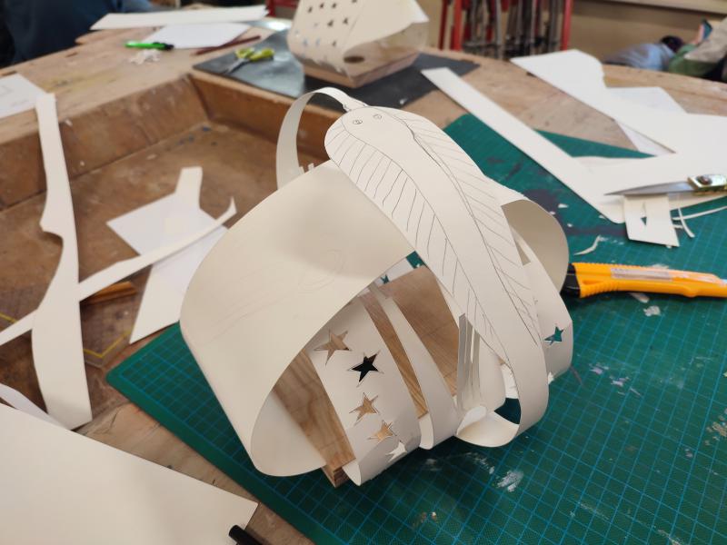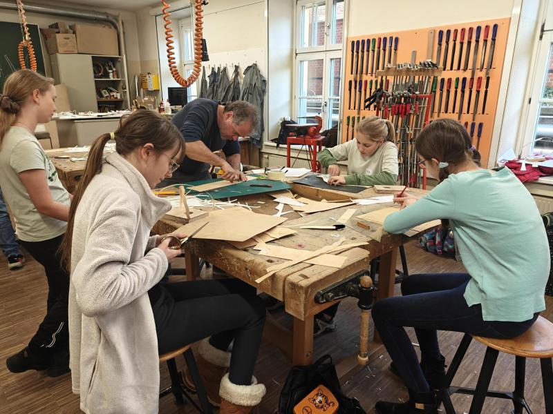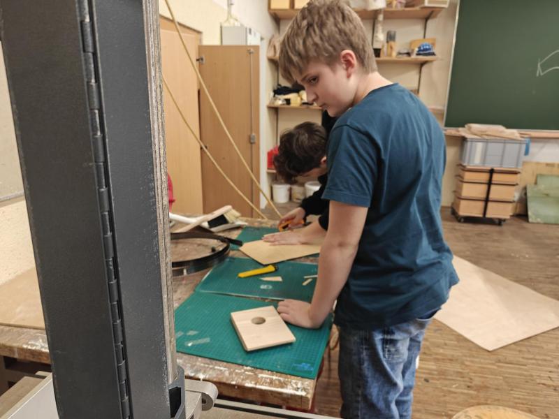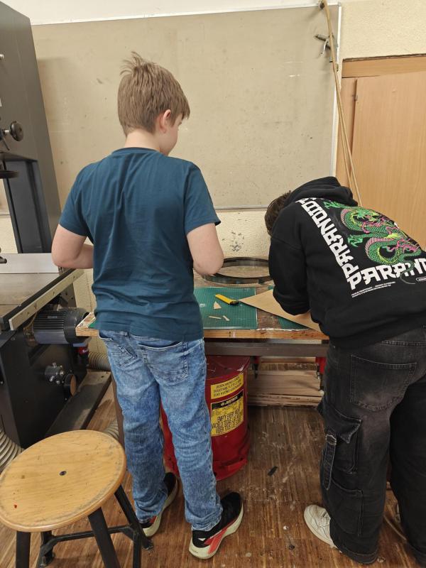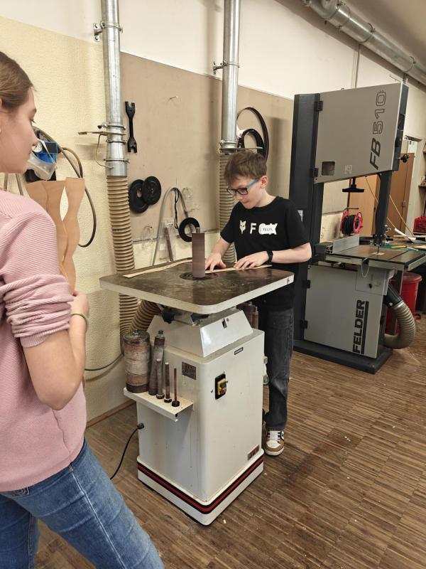 Am 5. März besuchten die Schüler:innen des TFK Kunstwerkstatt die Holzwerkstätte der HBLA für künstlerische Gestaltung. Beim Workshop „Design mit Holz“ entwarfen und bauten sie unter der Anleitung von Prof. Siegfried Miedl eigene Lampen aus biegsamem, leicht durchsichtigem Holz. Dabei konnten sie kreativ gestalten und gleichzeitig praktische Erfahrungen im Arbeiten mit Holz sammeln.
