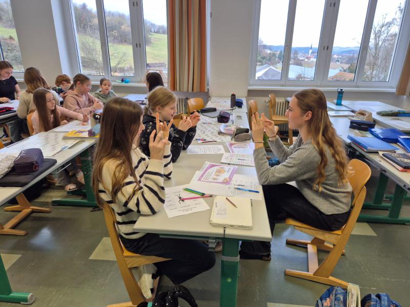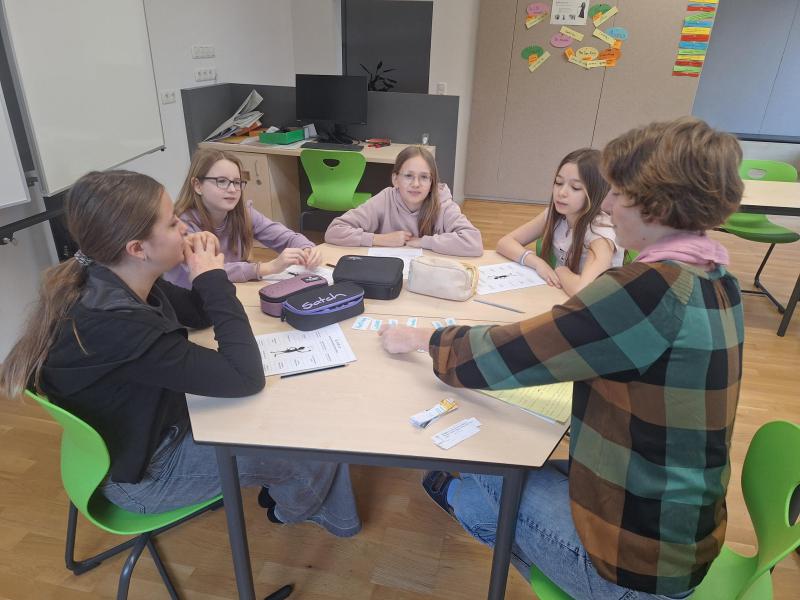 Im Sinne des Peer-Teachings erklärten die Siebtklässler:innen in Kleingruppen Lernmethoden, gaben Tipps zum Vokabellernen und zeigten, wie man sich auf Tests vorbereitet. Die Erstklässler:innen konnten die Techniken direkt ausprobieren und Fragen stellen.