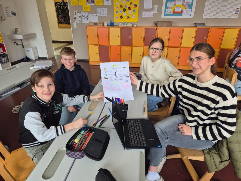 Am Montag, den 2. März, stand der Psychologieunterricht im Zeichen eines besonderen Austauschs zwischen den Klassenstufen. Nach intensiver Vorbereitung zum Thema Gehirn, Gedächtnis und Lernen sowie sorgfältiger Planung der beiden Unterrichtsstunden starteten die Siebtklässler:innen das Projekt: Sie übernahmen für zwei Stunden die Rolle der Lehrenden und gestalteten eine Lerneinheit für die Erstklässler:innen. Ziel war es, praxisnahe Tipps zu geben, Lernmythen aufzuklären und Strategien für den Schulalltag vorzustellen.