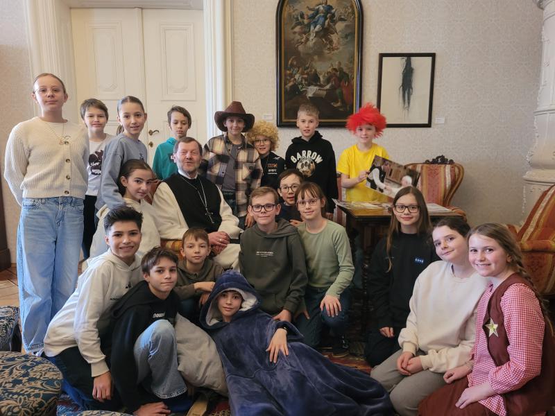 Abt Reinhold Dessl nimmt sich für jede 1. Klasse Zeit zum gegenseitigen Kennenlernen. Dazu lädt er sie zumeist in sein Büro ein und die Schülerinnen und Schüler haben die Gelegenheit, Fragen zu stellen – so auch zum Lieblingsheiligen, zu Freizeitaktivitäten und Vorlieben.